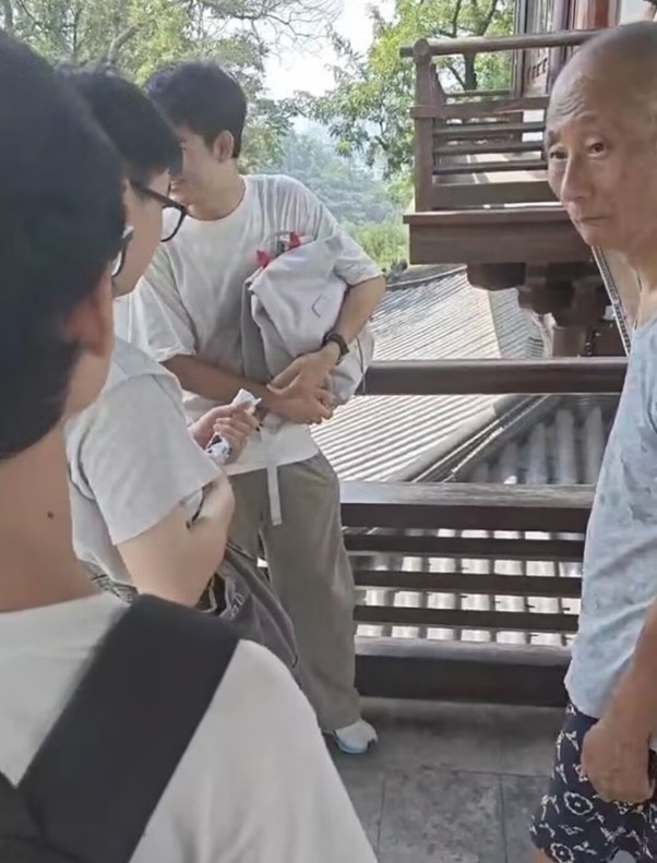 在長江邊的觀景亭中,團隊成員偶遇一位常年在此休憩的本地長者。老先生得知同學們此行目的后,主動為大家講述北固山的建筑布局、歷史典故乃至燈具陳設的寓意。他語言幽默、考據嚴謹,不僅吸引了實踐隊員,也引得周圍游客駐足聆聽。臨別之際,老先生一句“我在這里生活了幾十年,這里的事情我清清楚楚”,道出了人與土地之間深厚的情感紐帶,也體現出傳統文化對一方百姓的深刻滋養。