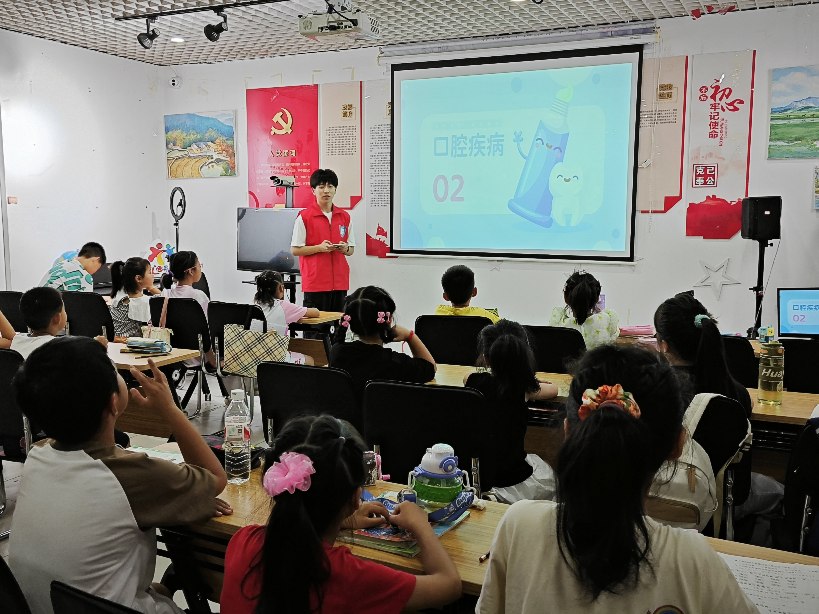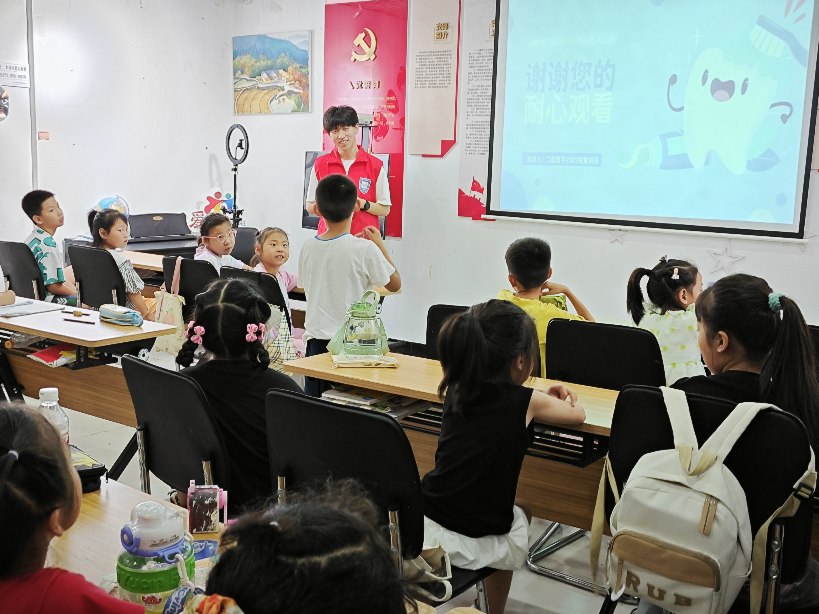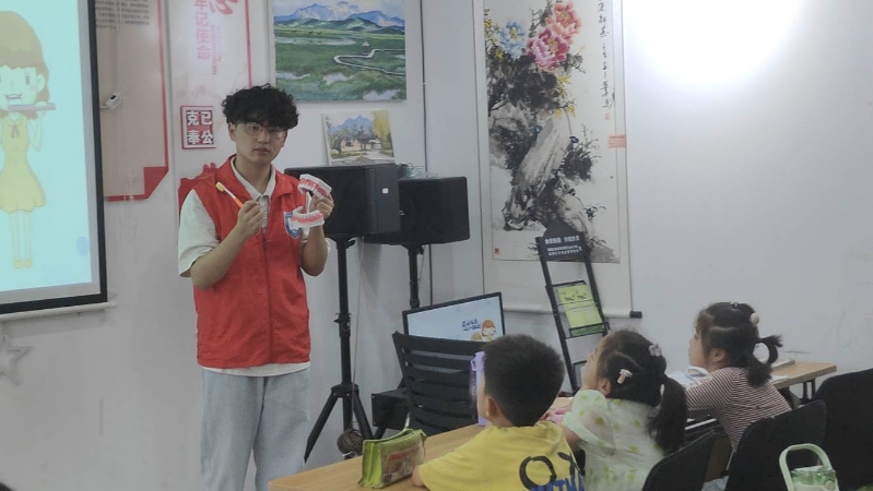 (江蘇醫藥職業學院醫學院7 月29日訊)(通訊員:潘靜怡)7月29日上午,江蘇醫藥職業學院口腔醫學2301班“健康科普.賦能鄉村”社會實踐團赴江蘇省徐州市鼓樓區九里新苑社區開展了一次精彩生動的“口腔健康科普”暑期社會實踐活動。宣講團負責人秉持“呵護口腔健康,科普從我做起”的信念,積極組織團隊成員開展本次活動。團隊成員分工明確,通過志愿宣講、游戲互動、現場演示、問卷調查等多種形式為小朋友們以及社區居民帶來口腔健康知識。