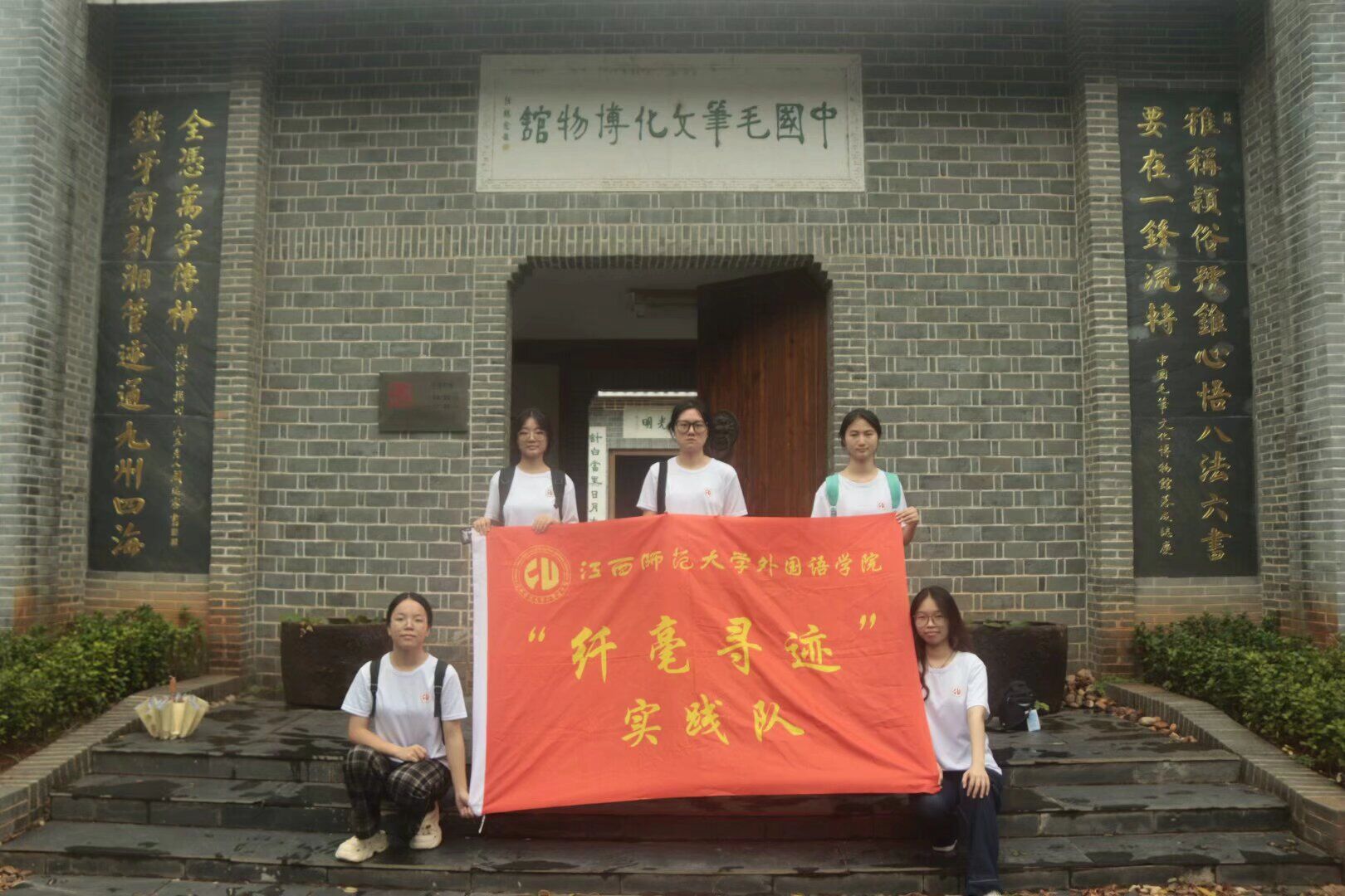 在中國傳統文化的長河中,毛筆作為書寫工具,不僅承載著千年的文化記憶,更是中華民族智慧的象征。為積極響應習近平總書記關于保護傳統文化的號召,加強文化遺產保護傳承,弘揚中華優秀傳統文化,江西師范大學外國語學院纖毫尋跡小隊于7月25日至27日踏上了探尋之旅,來到了享有“中國毛筆之鄉”美譽的江西省南昌市進賢縣文港鎮,深入挖掘毛筆文化的深厚底蘊。