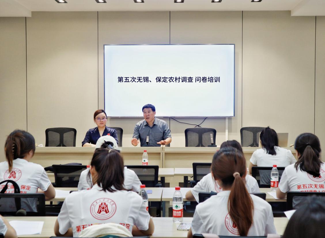 7月8日上午,實(shí)踐團(tuán)抵達(dá)無(wú)錫市惠山區(qū)玉祁街道玉東村村委會(huì),首先開(kāi)展“第五次無(wú)錫、保定農(nóng)村調(diào)查”培訓(xùn)會(huì)。會(huì)上,中國(guó)社會(huì)科學(xué)院經(jīng)濟(jì)研究所隋福民教授作調(diào)查重點(diǎn)提示,江南大學(xué)商學(xué)院分團(tuán)委書(shū)記王璁作安全警示教育。項(xiàng)目組通過(guò)實(shí)例分析與模擬調(diào)查等形式,幫助調(diào)查員理解調(diào)查問(wèn)卷設(shè)計(jì)和調(diào)查對(duì)象所處社會(huì)結(jié)構(gòu)。