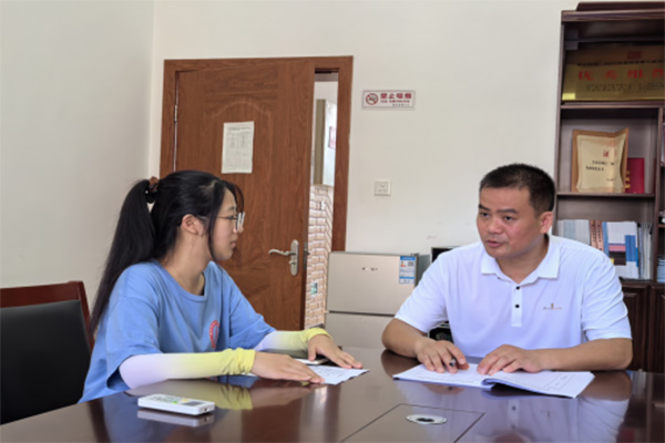 實踐團采訪青田職技校體藝衛副主任。沈欣怡 供圖