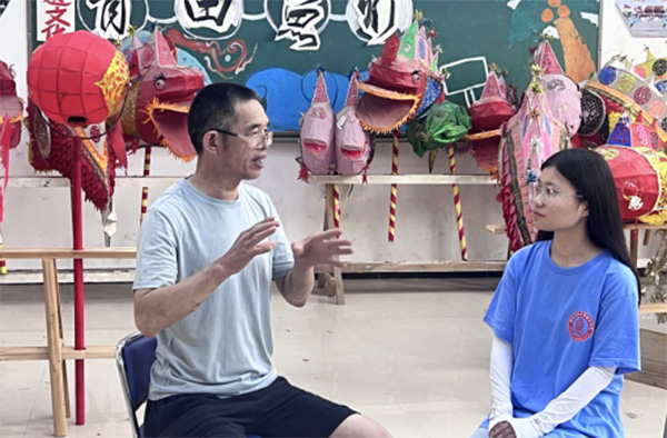 實踐團采訪省級魚燈舞代表性傳承人。沈欣怡 供圖