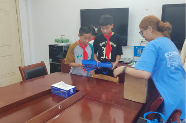 在張主席的帶領下,實踐團與來自海溪鄉中心學校的三位學子進行對話。他們的話語中洋溢著對魚燈舞的敬仰與熱愛,并且自豪地分享在魚燈舞課程中的學習過程,“老師在每周三給我們上魚燈舞的課,我們都很積極地向老師學習。”在學校和政府的支持下,魚燈舞課程已成為海溪鄉中心學校校園文化的一抹亮色。學子們不僅承襲了魚燈舞的表演技藝,也在一燈一舞中增強對非遺文化的理解與認同。