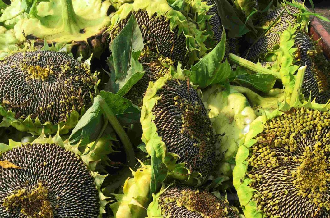 圖為村民們在收獲葵花籽