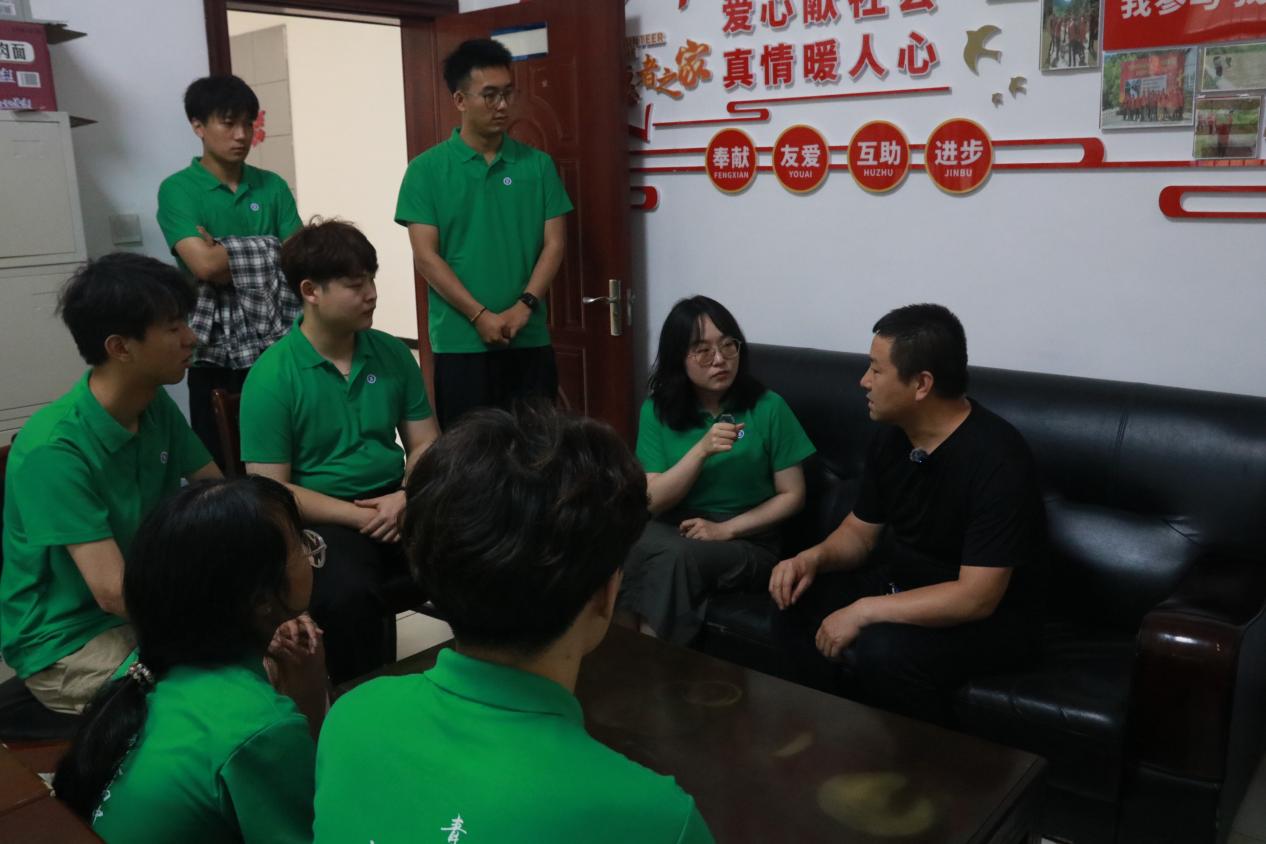 最后,實踐團成員與閔家河村黨支部書記王亞新展開座談。王亞新書記為實踐團講解了當地發展的政策、現狀,談及當前綠色低碳發展面臨的主要問題。閔家河村采用“黨建引領、黨員主體、多元參與”的工作模式,嚴格落實網格化管理責任,引導村民貫徹學習黨的二十大精神,喚醒群眾的主人翁意識,筑牢“護一泓清水永續北上”共識,塑造向善、向上、團結、文明的社會道德新風尚。