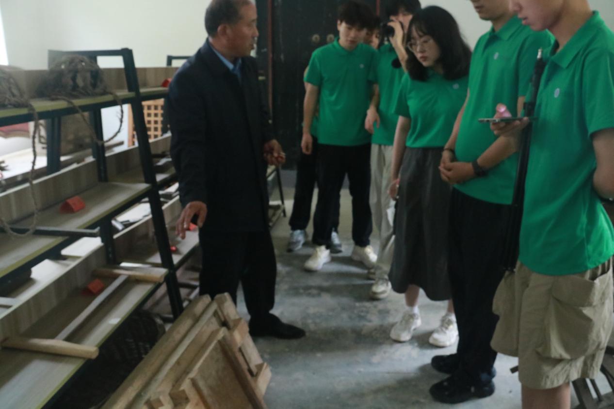 鋪好綠色發展底色,開創生態發展新模式。張志印副書記帶領實踐團參觀了秦嶺農耕文化展室,這里展示著古老先民農耕時代用過的犁、鏵、耙、耱、小推車、籠擔、紡車、油燈、織布機等器物,秦嶺山水鄉村人民生計生活的農耕畫卷漸次鋪陳。