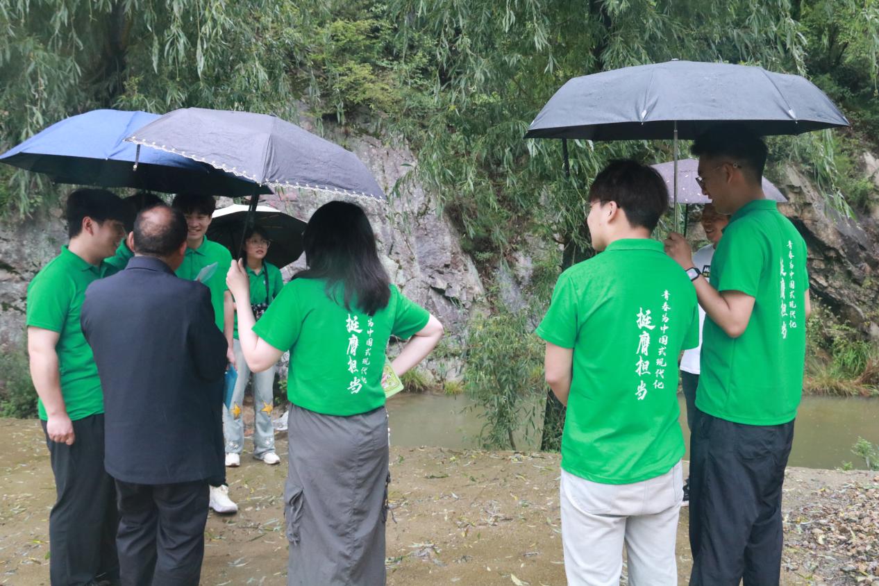 閔家河村黨支部副書記張志印帶領實踐團參觀許愿池與圓夢谷