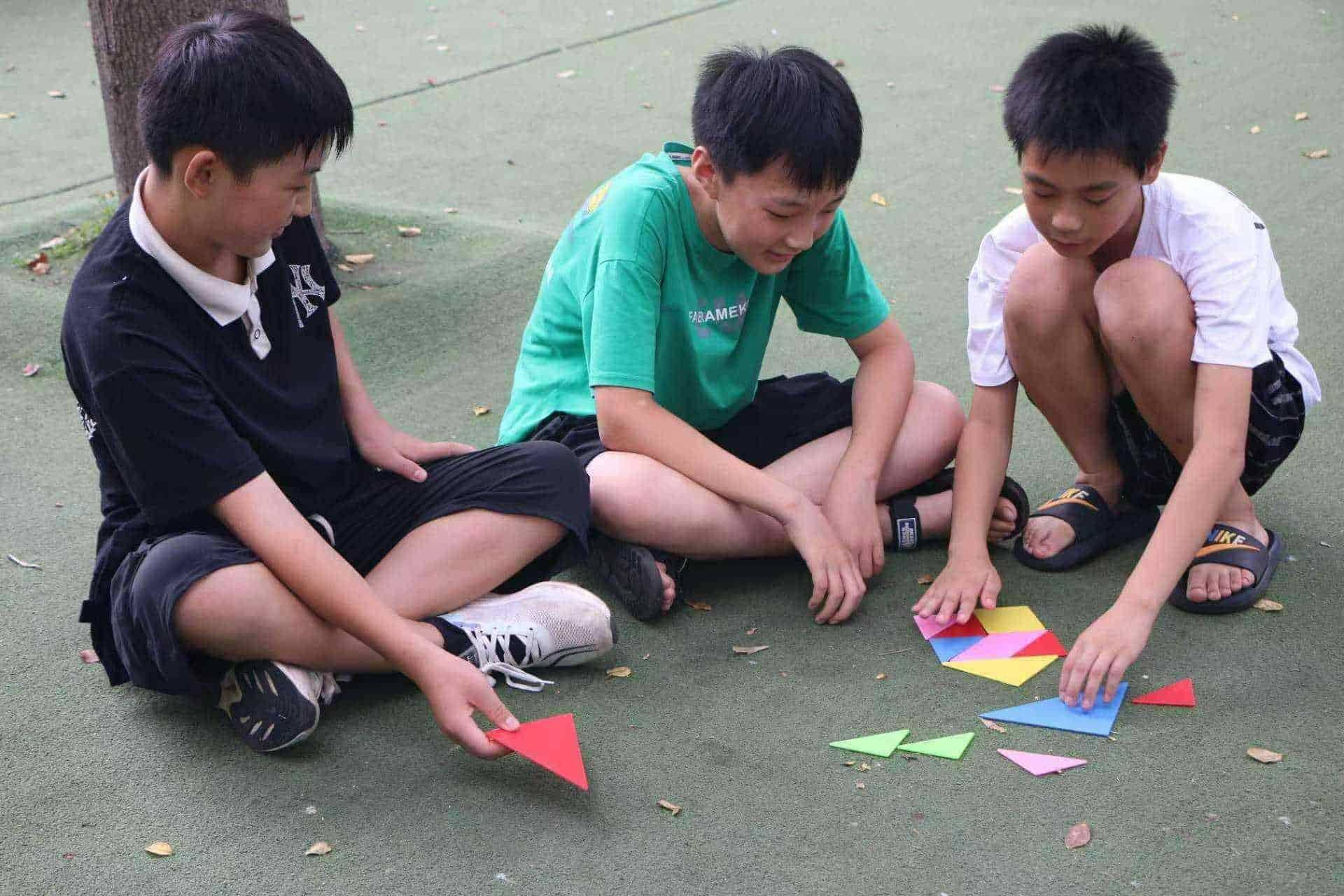 七巧板游戲,思維激蕩活動當(dāng)日,晴空萬里,微風(fēng)輕拂,正是激發(fā)智慧的好時光。杜克磊老師先詳細(xì)介紹了管理七巧板游戲的規(guī)則和目標(biāo),然后將同學(xué)們分成若干小組,并為每個小組分發(fā)了精心準(zhǔn)備的七巧板道具。老師的耐心講解瞬間點燃了孩子們的好奇與參與熱情。