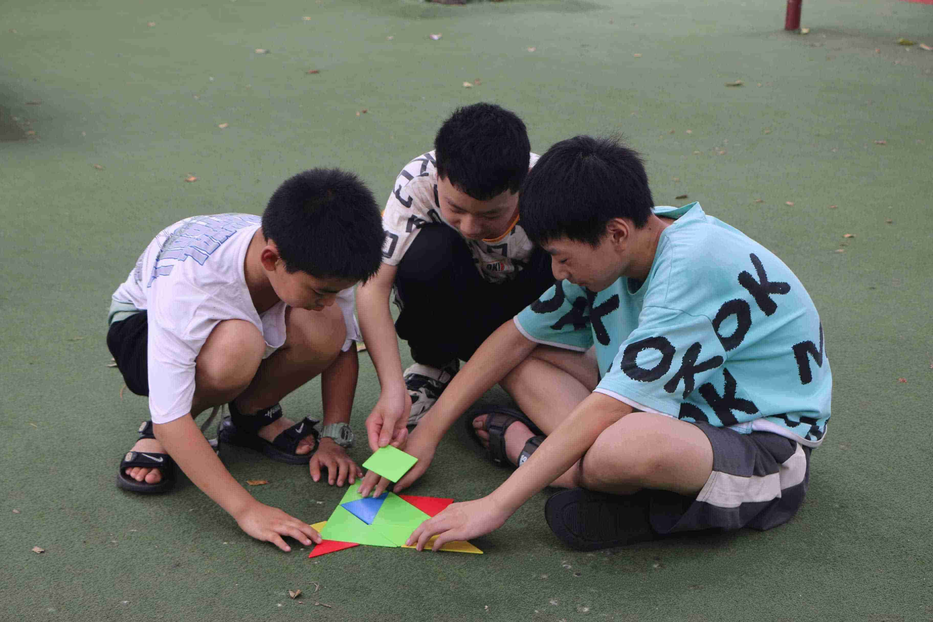 團(tuán)隊協(xié)作,共解難題活動現(xiàn)場,一個個七巧板道具等待著孩子們的智慧拼接。面對形狀各異的七巧板,孩子們在小組中積極討論、分工協(xié)作。有的孩子負(fù)責(zé)出謀劃策,有的孩子負(fù)責(zé)動手拼接,大家齊心協(xié)力,共同嘗試完成各種復(fù)雜的圖案和任務(wù)。