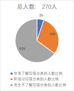 在采訪的270名居民中,只有5%的居民非常了解垃圾分類,卻又65%的居民對垃圾分類完全不了解。