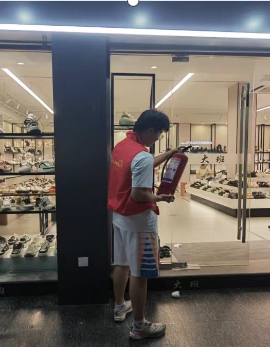 通過積極與社區(qū)黨支部交流對接,在對社區(qū)的大體情況與相關(guān)問題進(jìn)行初步了解后,團(tuán)隊(duì)成員決定通過以夜巡的方式來開展活動。在甌北義警和黨員的帶領(lǐng)下,金瑞開同學(xué)在雙塔路、金桂花小區(qū)等多地進(jìn)行巡邏,向店家科普消防相關(guān)知識,并向其展示滅火器的使用相關(guān)技能,為維護(hù)社區(qū)用火用電安全貢獻(xiàn)一份自己的力量。