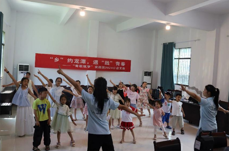 為踐行大學生志愿服務精神,積極服務社會,鍛煉實踐能力,提高綜合素質,7月13日起,“青歌筑夢”實踐團來到酉陽縣龍潭鎮龍泉社區新時代文明實踐站開展了系列公益支教活動,帶領當地孩子領略音樂、舞蹈的魅力,激發孩子們對藝術的熱愛,用音符筑夢鄉村振興,用旋律奏響美育樂章。
