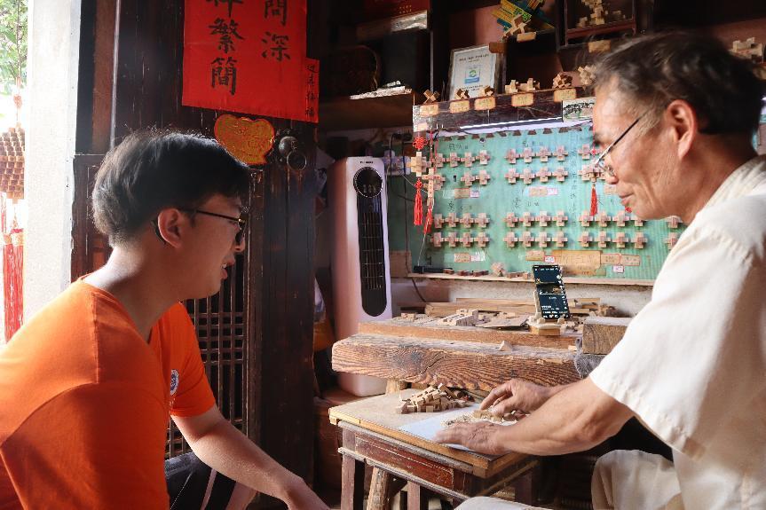 除了建筑和書籍,實(shí)踐團(tuán)隊(duì)成員還對(duì)當(dāng)?shù)氐氖止に嚻愤M(jìn)行了深入采訪和體驗(yàn)。諸葛八卦村的手工藝品種類繁多,每一件都凝聚著工匠們的智慧和心血。孔明鎖,這一古老而精妙的智力玩具,讓同學(xué)們驚嘆于古人的智慧和創(chuàng)造力。它不僅是一種娛樂工具,更是智力和技巧的象征。除此之外,村中還有精美的扇子和木雕,這些手工藝品不僅工藝精湛,而且蘊(yùn)含著豐富的文化內(nèi)涵。扇子上繪有精美的畫作,木雕中人物和場(chǎng)景栩栩如生,每一件作品都展現(xiàn)著傳統(tǒng)文化的獨(dú)特魅力。同學(xué)們?cè)谛蕾p這些作品的過程中,深刻感受到了傳統(tǒng)文化的藝術(shù)之美和精神之光。通過這些手工藝品,傳統(tǒng)文化得以傳承和發(fā)揚(yáng),展現(xiàn)了中華文化的深厚底蘊(yùn)。