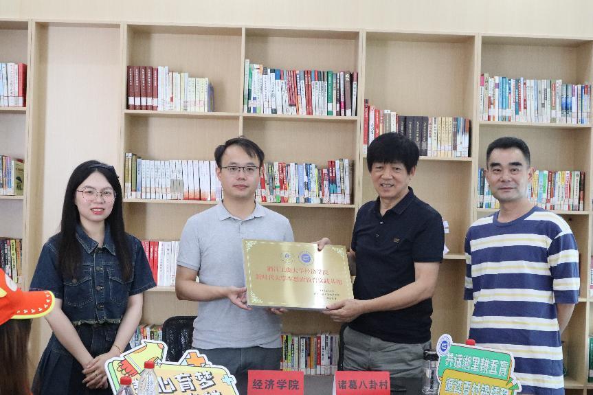 在訪談之后,浙江工商大學(xué)經(jīng)濟(jì)學(xué)院與諸葛八卦村開展了簽約授牌儀式。王海老師為諸葛八卦村培育新時(shí)代大學(xué)生思政實(shí)踐教育基地和勞動(dòng)實(shí)踐教育基地授牌,諸葛村黨總支書記諸葛坤亨代表諸葛八卦村接牌。隨后,莫瀟杭老師與諸葛書記共同簽署了共建大學(xué)生社會(huì)實(shí)踐基地協(xié)議書,進(jìn)一步深化了雙方在社會(huì)實(shí)踐和人才培養(yǎng)方面的合作,為未來的長(zhǎng)期合作奠定了堅(jiān)實(shí)基礎(chǔ)。