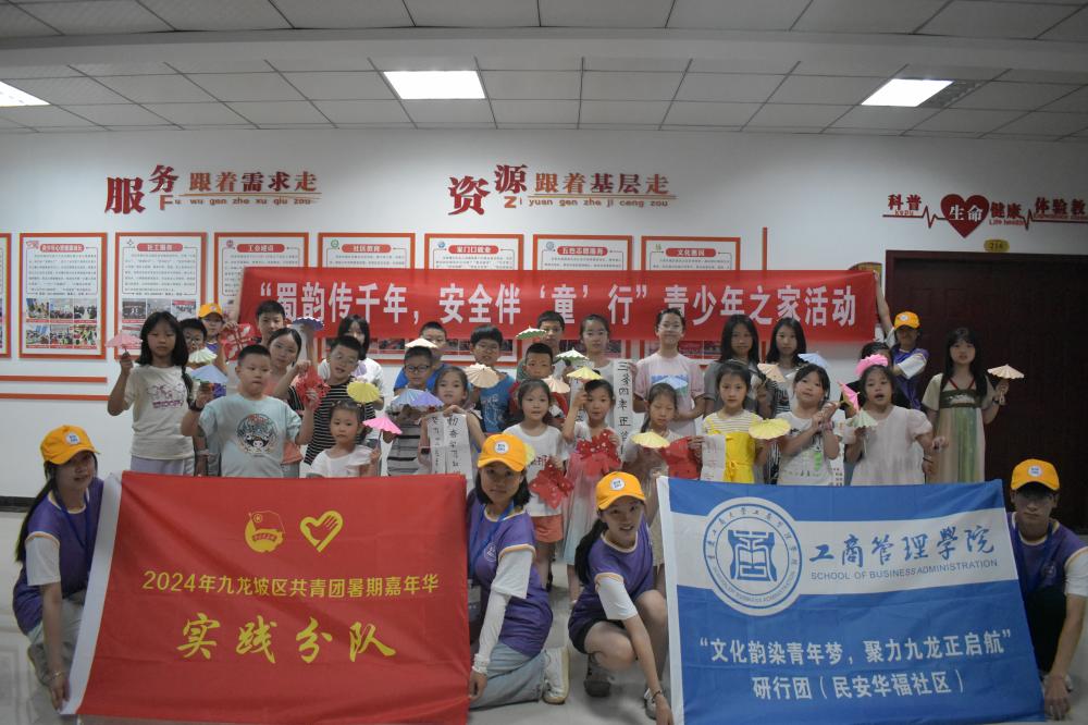 2024年7月16日,重慶工商大學(xué)工商管理學(xué)院“文化韻染青年夢(mèng),聚力九龍正啟航”研行團(tuán)成員在重慶市九龍坡區(qū)民安華福社區(qū)舉行了主題為“古韻傳千年,安全伴‘童’行”青少年之家活動(dòng)。本次活動(dòng)不僅踐行“見(jiàn)人見(jiàn)物生活”理念,讓非遺回歸到我們的生活之中,傳承中華優(yōu)秀傳統(tǒng)文化,還培養(yǎng)青少年辯證的思維模式,以動(dòng)畫典型人物分析的形式開(kāi)展,鍛煉青少年多角度分析事物的能力。
