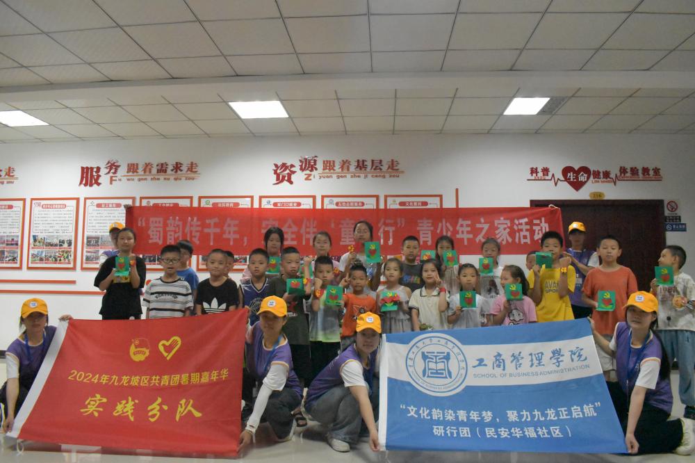 2024年7月15日至7月19日,重慶工商大學(xué)工商管理學(xué)院“文化韻染青年夢,聚力九龍正啟航”研行團策劃組織的“蜀韻傳千年,安全伴‘童’行”流動少年宮在重慶市九龍坡區(qū)民安華福社區(qū)落下帷幕。在這五天的時間里,研行團成員和青少年討論了科技創(chuàng)新、文化保護、愛國愛黨等一系列熱點話題,旨在培養(yǎng)青少年多元化技能,使其在活動中健全人格,錘煉意志。