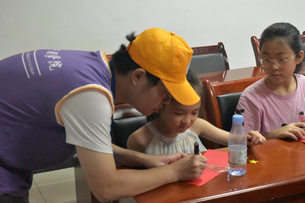 愛國愛黨,行在路上。7月18日上午,主持人邀請了幾位青少年上臺分享革命故事。革命故事讓在場的青少年深受啟發(fā),也進一步加深了他們對中國共產(chǎn)黨歷史的了解。隨后,研行團成員帶領(lǐng)青少年們學(xué)習(xí)了歌曲《紅星閃閃》,青少年們紛紛投入到了歌曲學(xué)習(xí)中。合唱環(huán)節(jié),青少年慷慨激昂,嘹亮激情的聲音響徹整個活動場地,展現(xiàn)了新時代少年兒童的風(fēng)采。此外,通過“愛國手環(huán)”和“建黨賀卡”兩個手工環(huán)節(jié),青少年不僅提高了動手能力,還在創(chuàng)作過程中加深了對國家的認(rèn)同感和集體歸屬感,增強了愛國情感。