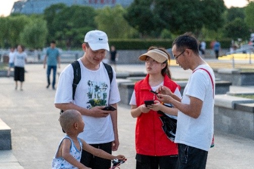 7月6日與7月7日傍晚,小分隊成員分別走進錢資湖公園與攬月灣廣場,開展濕地生態保護意識調查與科普宣傳活動。小分隊成員們身著統一的志愿者服裝,向公眾普及濕地生態保護的重要性及當前面臨的威脅,并通過電子問卷的形式收集市民對濕地保護的認知程度。