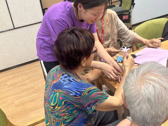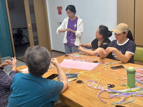 小隊成員耐心的為老人講解夏季老年人高發疾病,如心血管疾病、呼吸道疾病、皮膚病等。同時,提醒老人此類疾病的發病特征以及預防手段,提升老人們的健康意識。此外,小隊成員們還分分發折紙和老人們一起制作手工藝品,成員們采用視頻的方式來教學,帶領著老人跟著視頻教學制作,如果遇到手腳不靈活或沒有跟上的老人,小隊成員親自上手,一步步為老人折疊紙張。老好。