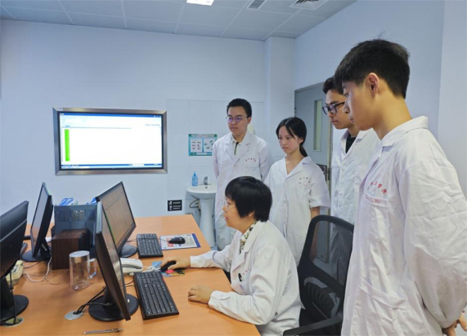 三、淄博市中心醫院 濱州醫學院“雙醫共融,醫路繁花”社會實踐隊前往淄博市中心醫院進行調研學習,在此過程中全體隊員不僅深入學習了心電圖的解讀與應用,更在實踐中促進了中西醫融合發展的理念。并且通過專家講解、案例分析及實操演練,讓大家深刻理解了心電圖在診斷心血管疾病中的重要性。同時,結合中醫理論,探討了中西醫結合在心臟病防治中的優勢與前景,激發了隊員們對中西醫融合發展的濃厚興趣與思考。此次活動不僅提升了醫務人員的專業技能,也為推動中西醫融合發展貢獻了一份力量。作為未來醫生的實踐隊員們將繼續探索中西醫結合的新路徑,為患者提供更加全面、有效的醫療服務。