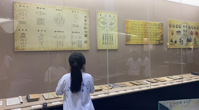 在調研過程中,隊員們系統參觀了煙臺中醫藥博物館的各個展廳,包括中醫藥歷史、文化、理論和現代應用等不同主題。通過觀察各種展品和文獻資料,每個成員都了解到中醫藥的起源、發展和演變,以及其在不同歷史時期的成就和貢獻。此外,為了獲取了更多關于中醫藥的實踐知識,全體隊員們還與博物館工作人員進行了深入交流,展開深度學習。