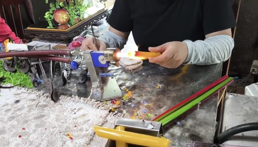 陽光灑在正忙碌于熔爐旁的師傅們身上,汗水如同細密的珠簾,沿著他們專注的臉龐滑落,滴落在灼熱的石板上,化為無形的蒸汽。然而,這份辛勞并未減緩他們制作的速度。實踐隊員目睹此景,驚嘆不已。一位師傅輕輕一抹額頭上的汗珠,微笑著說:“我們做琉璃已經做了好幾年了,早就習慣了。要想要最好的琉璃,把琉璃的美展現出來,急躁是不能夠的,這每件作品,都是我們的心血。”正是這些默默無聞的匠人,用雙手與汗水,守護著這份珍貴的文化遺產,讓淄博琉璃的光芒得以穿越時空,照耀至今。