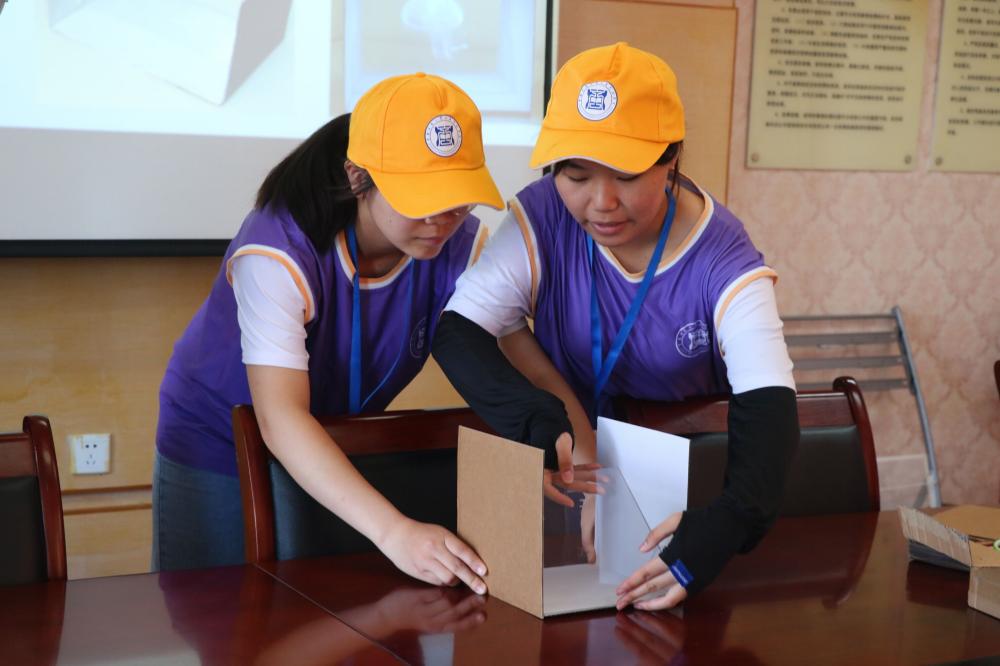 課間休息后,手工實踐課開始了。研行團成員先進行了示范講解,并為小朋友們進行分組和分發制作材料。接下來,研行團成員帶領小朋友們進行簡易全息投影儀的制作。在第二堂課的最后,小朋友們展示了各自的制作成果,還分享了自己的想法和感受。研行團成員進行了本次活動的總結,引導小朋友們樹立將科技創新與文化傳承相結合的觀念。