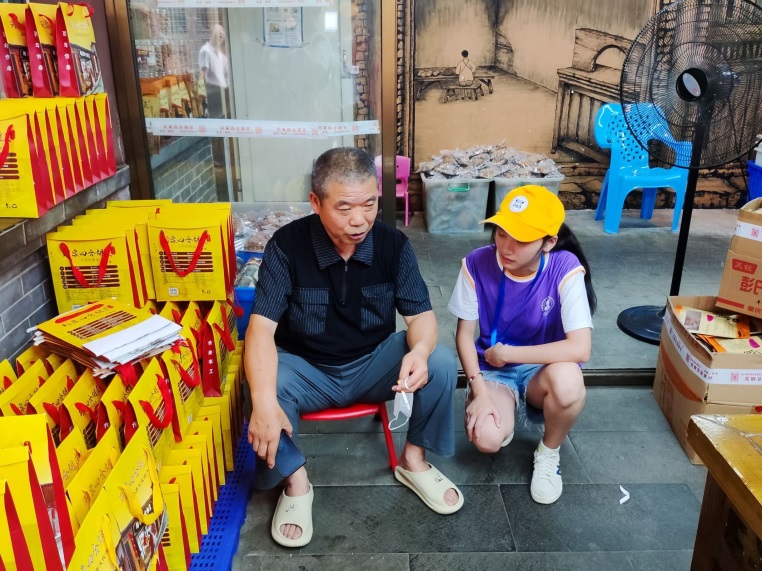 (實踐團隊成員與劉氏四合胡豆傳承人交談)