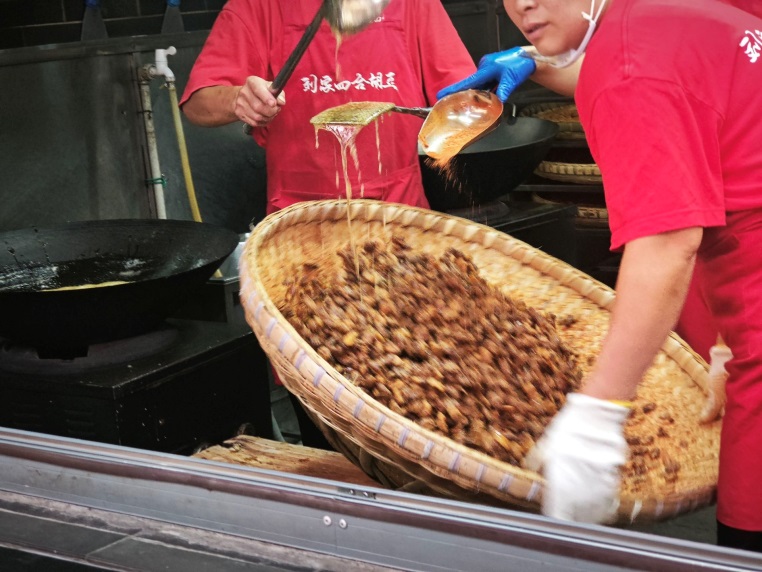 (員工們給胡豆“穿糖衣”)