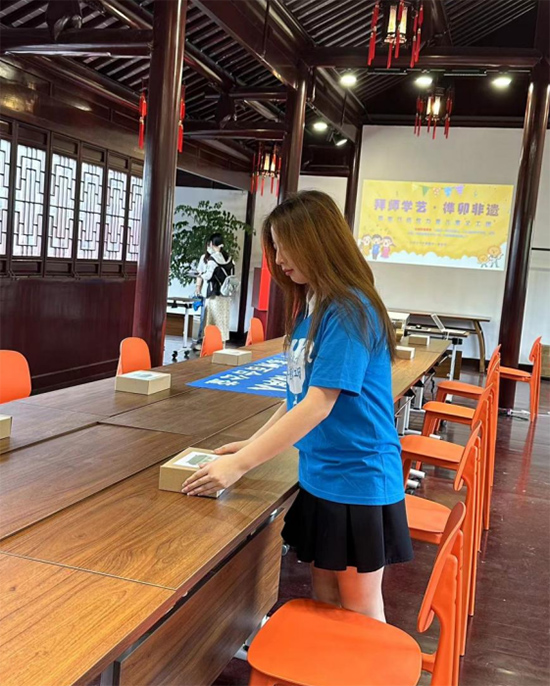 7月17日,趙惠琪同學(xué)在蘇州唐伯虎故居的榫卯公益課堂上進(jìn)行了志愿者服務(wù)照片