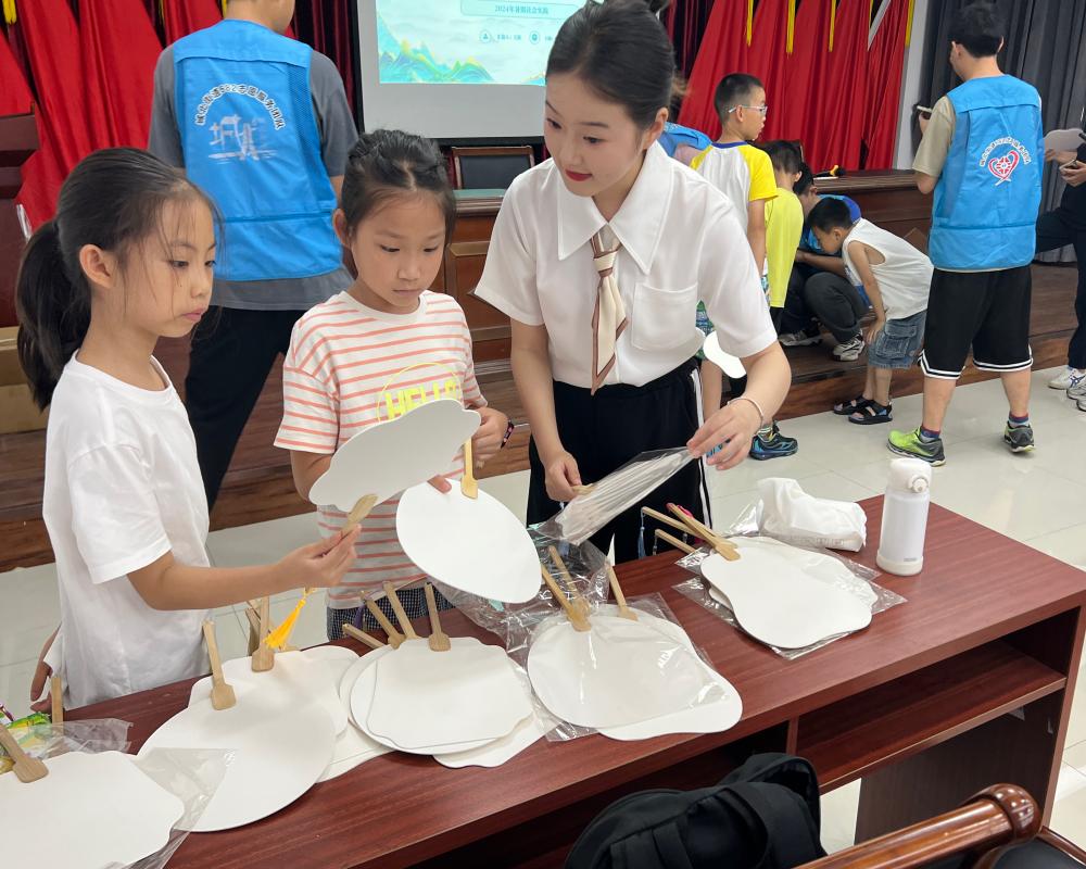 青春印記綠動引航實踐團成員為小朋友們頒發垃圾分類手冊 奚可人供圖 為了更好地傳承和弘揚中國傳統手工藝品——漆扇,在垃圾分類宣講活動結束后,小隊還舉辦了非遺漆扇制作宣講活動。漆扇作為中國傳統文化的重要組成部分,不僅具有悠久的歷史和精湛的技藝,還承載著豐富的文化內涵。此次活動旨在通過展示漆扇的制作過程、技藝傳承和文化內涵,提高公眾對非遺文化的認識和關注。