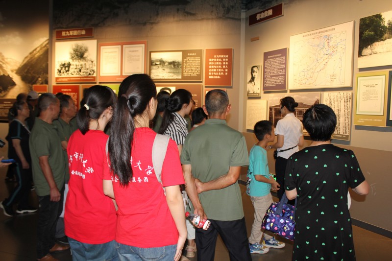 隨后,他們跟隨講解員的腳步仔細(xì)參觀了整個(gè)紀(jì)念館.在這里,他們不僅看到許多圖文記載,還看到了很多極具意義的文物,例如:當(dāng)年紅軍渡河時(shí)居民們主動(dòng)提供的自家門板,用于搭橋渡河。紀(jì)念館中展出的每一樣文物與故事,都彰顯著當(dāng)年紅軍的智慧與深得民心。同時(shí),游客們也感受到當(dāng)年紅軍作戰(zhàn)的艱辛與不易,更被紅軍將士保家衛(wèi)國(guó)的鋼鐵意志深深折服!