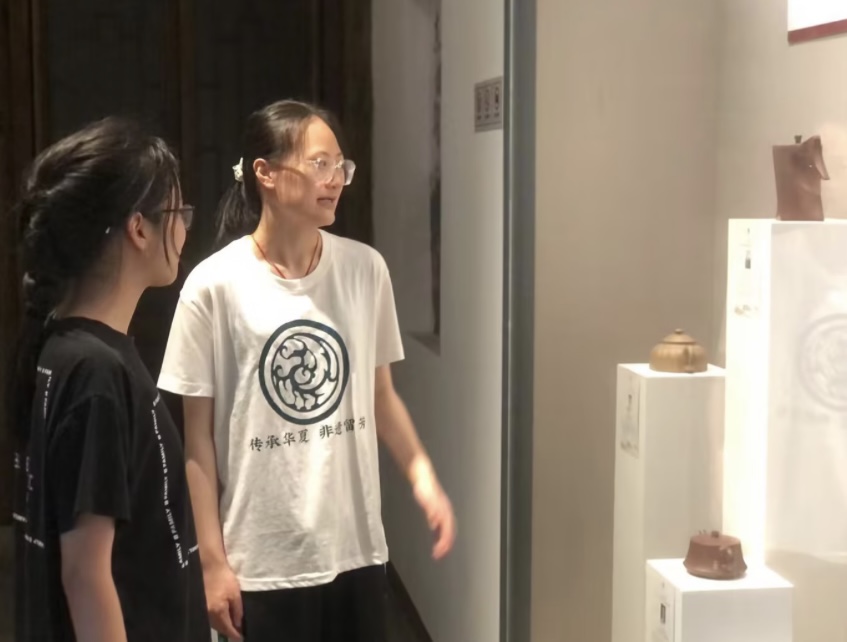 實踐隊員們不僅是探索者,更是傳播者,以滿腔的熱情與專業的知識,為每一位駐足的游客揭開紫砂壺神秘的面紗。在柔和的燈光下,隊員們的聲音如同潺潺流水,細膩而生動,將紫砂壺的歷史淵源、制作工藝、藝術特色以及背后蘊含的文化意涵,一一娓娓道來。那些關于匠人精神的傳承、關于自然與人文和諧共生的哲學思考,都隨著他們的講述,化作一股股暖流,既有對古老技藝的驚嘆,也有對設計匠心的深深敬佩,空氣中彌漫著對非遺文化共同的尊重與熱愛。