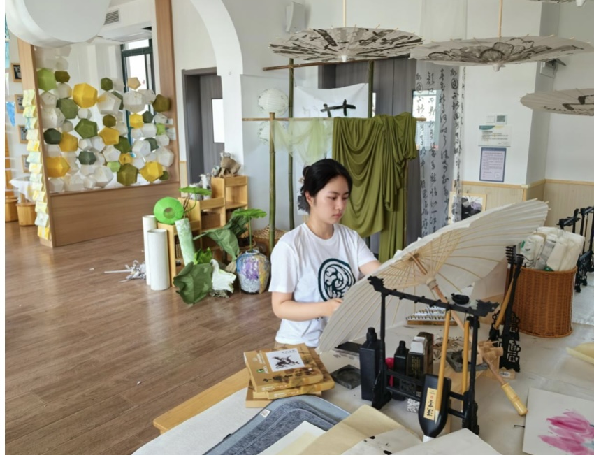 油紙傘是一件融合了藝術(shù)美感與文化底蘊(yùn)的杰作。每一把傘的完成,都是對(duì)傳統(tǒng)文化的致敬與傳承,讓實(shí)踐隊(duì)員心中油然而生對(duì)這份寶貴遺產(chǎn)的敬畏與珍視。杭州的油紙傘不僅僅是一種傳統(tǒng)手工藝品,更是一種文化的傳承與延續(xù)。它讓人們?cè)谛蕾p其獨(dú)特魅力的同時(shí),也能深刻體會(huì)到中華文化的博大精深和源遠(yuǎn)流長(zhǎng)