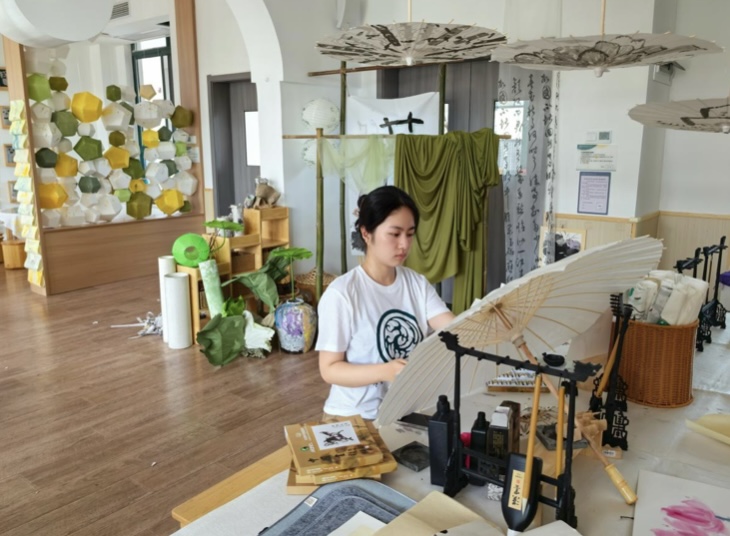 圖為實踐隊員在體驗制作油紙傘 之江隊 供圖