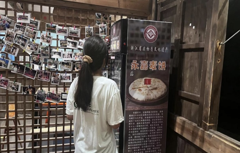 同時,在浙江溫州永嘉,實踐成員也深刻體驗了當地特色非遺美食——永嘉麥餅,對當地人民來說,它不僅僅是一種地方特色小吃,更是千百年來永嘉人民智慧與勤勞的結晶,承載著豐富的歷史記憶與民俗風情。從和面、制餡、包餅到烘烤,這看似簡單的制作過程,實則是經過了無數次的嘗試與改進,才得到的世代相傳的技藝與經驗的積累。在體驗過程中,隊員們親眼見證了麥餅從一塊普通的面團逐漸變成金黃酥脆、香氣四溢的美食的過程,仿佛能感受到匠人們對食材的敬畏之心,以及他們對傳統手藝的堅守與傳承。