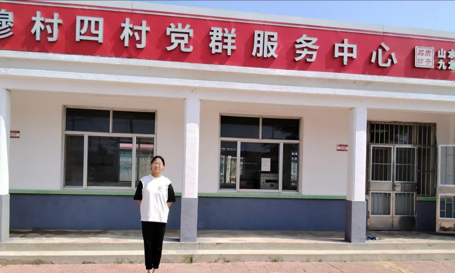 圖為實踐隊員站在村委會前 中國青年網通訊員王毓芝 供圖