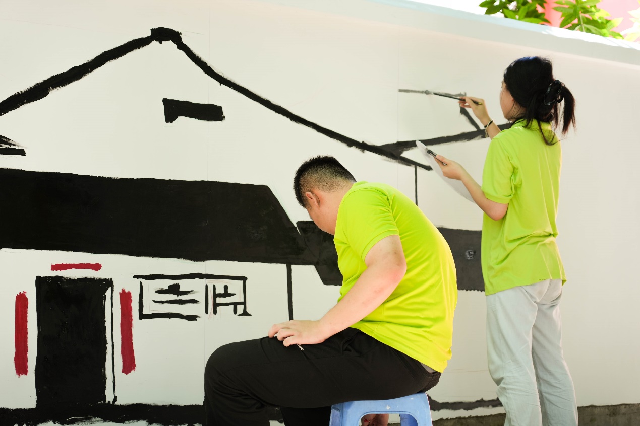 圖為實踐隊隊員進(jìn)行墻繪改造過程 林婧/提供