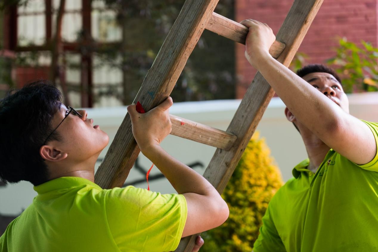 圖為實踐隊隊員與當(dāng)?shù)卮迕襁M(jìn)行改造材料的搬運 林婧/提供