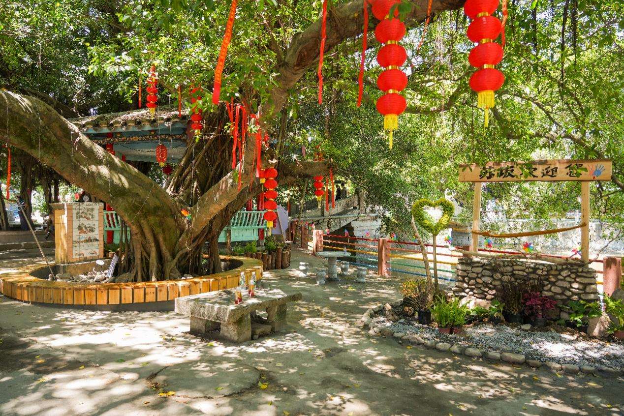 圖為實踐隊隊員為榕樹掛祈福條 林婧/提供