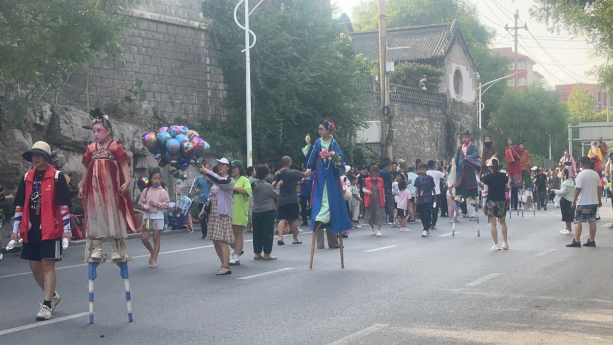 圖為文姜廟會踩高蹺雜技演員表演 中國青年網通訊員 張家賓 供圖