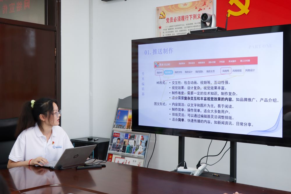 圖為實踐團成員分享微信公眾號推送制作經驗。鄒燃 供圖