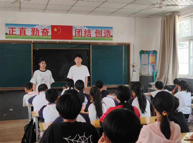 語言是人類最重要的交際工具和信息載體,普通話作為現代民族共同語,在社會交往和經濟發展中發揮著至關重要的作用。推廣普通話,是我國現代化建設的一項重要任務,對于促進各地區、各民族之間的交流合作,增強國家凝聚力和文化軟實力,具有深遠意義。隨著社會的發展,統一的語言便于人們日常的交流,普通話作為我國交流的官方語言,更應被人們熟知且熟練運用,這不僅加強了溝通的便利,也大幅度的提升了農村地區的經濟發展與鄉村振興戰略的推進。7月15日河南科技大學商學院“夏語潤鄉,語你同行”大學生暑期社會實踐團到達河南省洛陽市宜陽縣錦屏鎮周苗小學開展推普活動,旨在讓周苗小學的師生們更加了解普通話,更加熟練運用普通話。