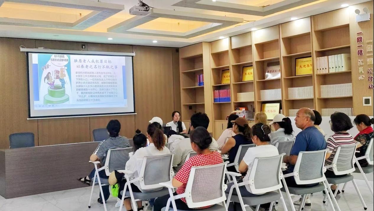 三、參觀學習,法治建設映眼簾分發傳單之余,實踐團還深入社區,為當地居民開展了防電信詐騙的專題講座,切實提升了居民們的防詐意識。一幅幅生動的圖片、一段段詳實的文字,向他們展示了恒大社區在法治建設方面所取得的成就。智慧安防系統的高效運行、矛盾糾紛調解機制的健全完善、法律服務站的貼心服務……每一處細節都讓他們深切感受到法治力量在社區治理中的重要作用。成員們邊看邊學,邊思邊悟,專業的眼光中透露出對法治事業的無限憧憬與熱愛。