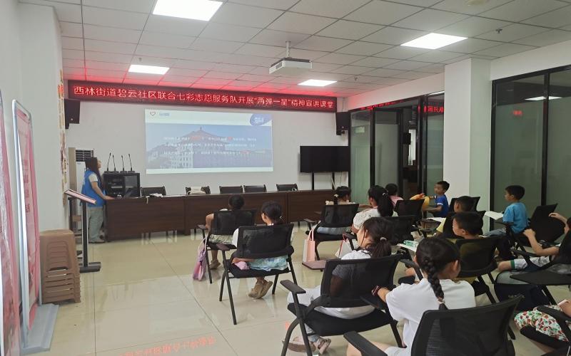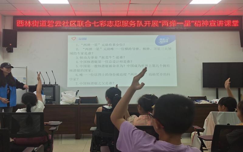 兩彈一星功勛永存,航天事業千秋萬代。為深入學習宣傳貫徹黨的二十大精神,落實“強國復興有我”群眾性主題宣傳教育活動相關要求,紀念中國第一顆原子彈成功爆炸60周年,大力弘揚“兩彈一星”精神。7月5日,內江師范學院七彩志愿服務隊“兩彈一星”宣講團成員們來到內江市東興區西林街道碧云社區為當地兒童開展“兩彈一星”精神志愿宣講活動。
