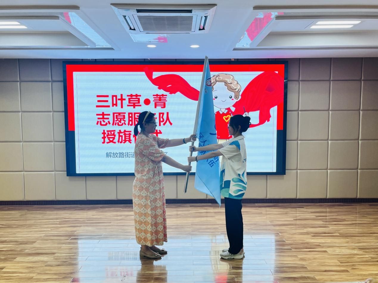 8月6日,“希望小屋·童心繪夢園”社會實踐團成員歷山路社區輔助歷山路社區圖書分館以及恒豐銀行趵突泉支行工作人員開展活動。結營儀式上社區居委會會長楊霄霞出席,并為“希望小屋·童心繪夢園”社會實踐團授旗。