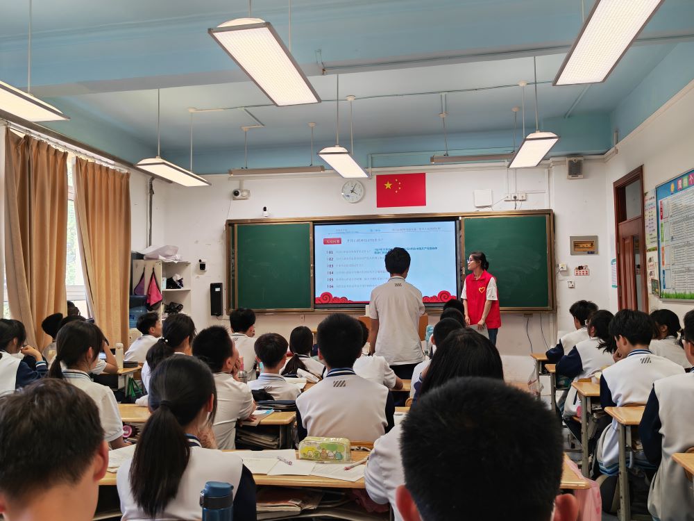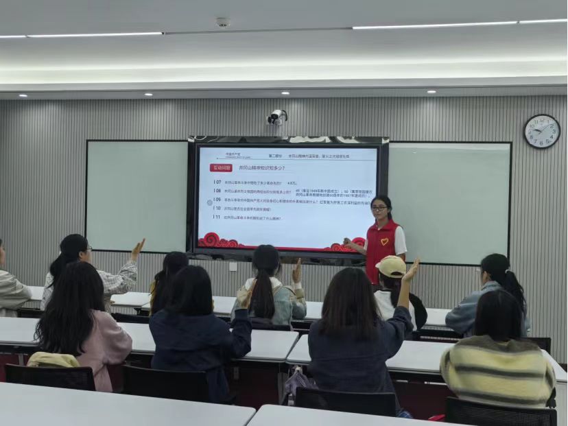 薪火相傳,詠響新章——中國海洋大學“薪火尋憶‘詠’相傳”宣講團開展知識競答活動井岡山精神,是中國共產黨人精神譜系的重要內容,是堅定信念、艱苦奮斗、實事求是、敢闖新路、依靠群眾、勇于勝利的革命精神豐碑。這一精神不僅是中國共產黨寶貴的歷史財富,更在新時代的征程中熠熠生輝,激勵著無數青年學子勇擔使命,砥礪前行。今年五月到八月,中國海洋大學“薪火尋憶‘詠’相傳”井岡山精神志愿服務宣講團帶著對井岡山精神的認同與歷史使命,分別在本校文學與新聞傳播學院中國特色社會主義研究會與青島第39中學,開展了以知識競答為主的特色宣講活動,通過理論宣講與問答形式,激發各年齡階段同學對井岡山精神的學習熱情,讓井岡山精神在新時代的青年心中生根發芽,與時代特色相結合,綻放出璀璨之花。
