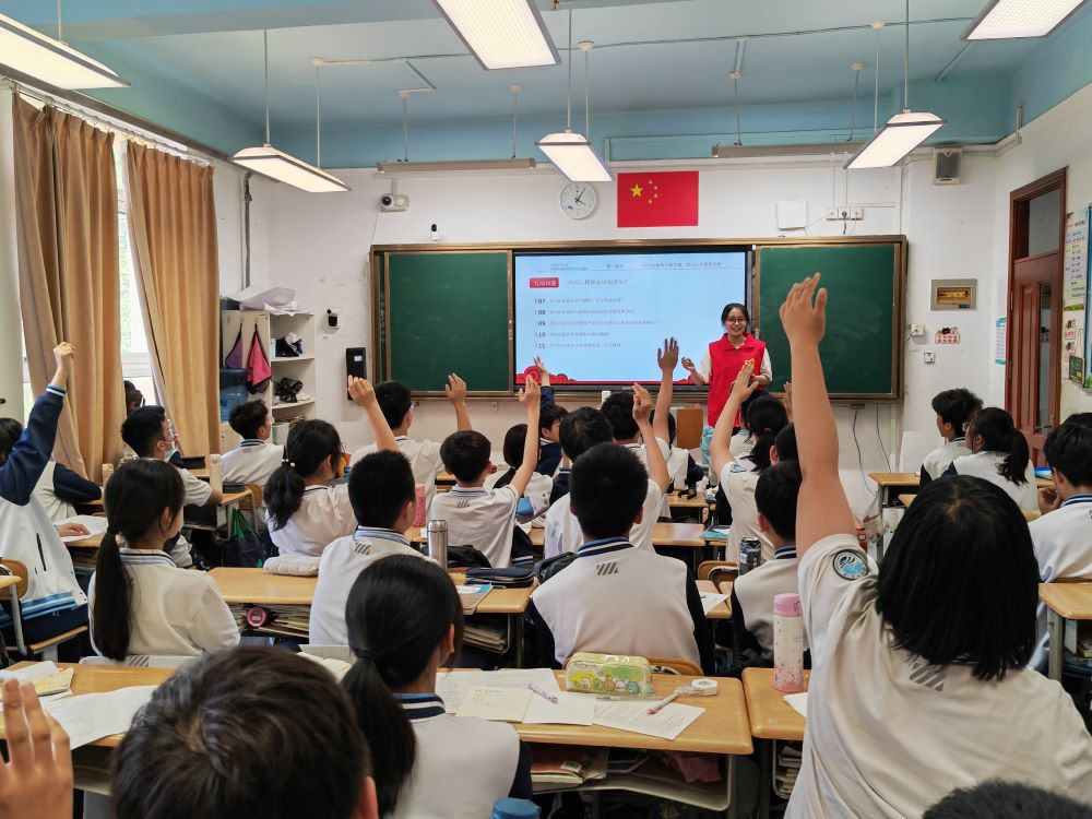 中學篇:青春激揚,熱情之花盛放在青島第39中學的宣講現場,同學們以更加活潑和直接的方式展現了他們對井岡山精神的學習熱情。在宣講前,或許他們的知識儲備還不足以撐起對井岡山精神的整體認知,宣講團成員巧妙運用朱德將軍的故事生動展現井岡山精神內涵,極大激發同學們的求知欲望。為更好幫助初中學生領悟井岡山精神,宣講團借助視頻吸引聽眾記下關鍵知識點,在互動中,同學們爭先恐后談起了自己的理解,中國革命新道路是什么、革命斗爭年代中國共產黨人對自身初心和使命的樸素概括是什么,這些課本上看似尋常的知識點在此刻化為更生動的符號,現場笑聲與掌聲不斷,盛放出求知道路上的熱情之花。