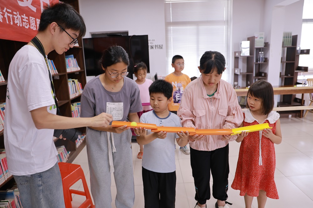 圖注 志愿者幫助小朋友們進(jìn)行“珠行千里”游戲 王澤曦 攝