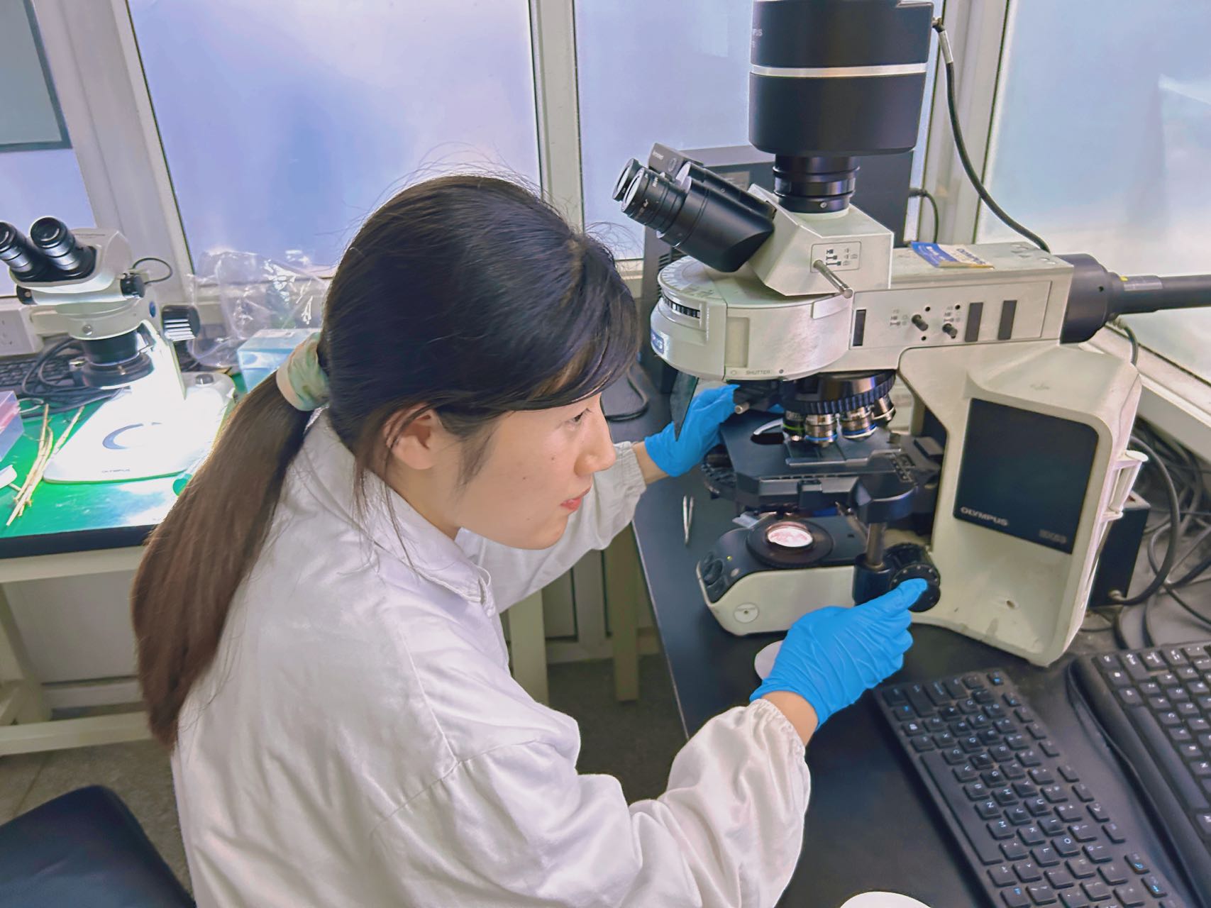 圖為成員鏡檢秸稈樣品 馮衍帥攝